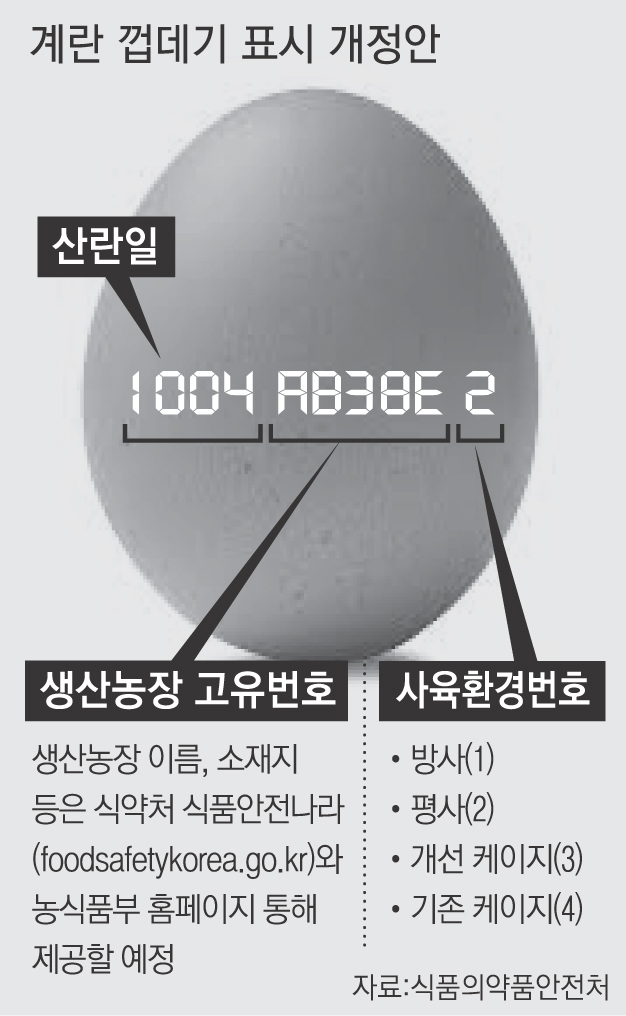 사육 환경에 따라 1~4의 숫자가 매겨져 있으며, 숫자가 작을수록 더 좋은 환경입니다. 이 중 사육환경번호 1, 2에 동물복지달걀 인증이 붙을 수 있게 됩니다.