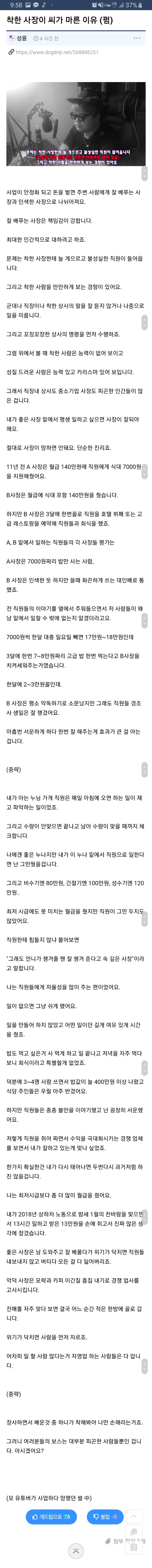 Subject   [펌] 착한 사장님들 씨가 마른 이유??