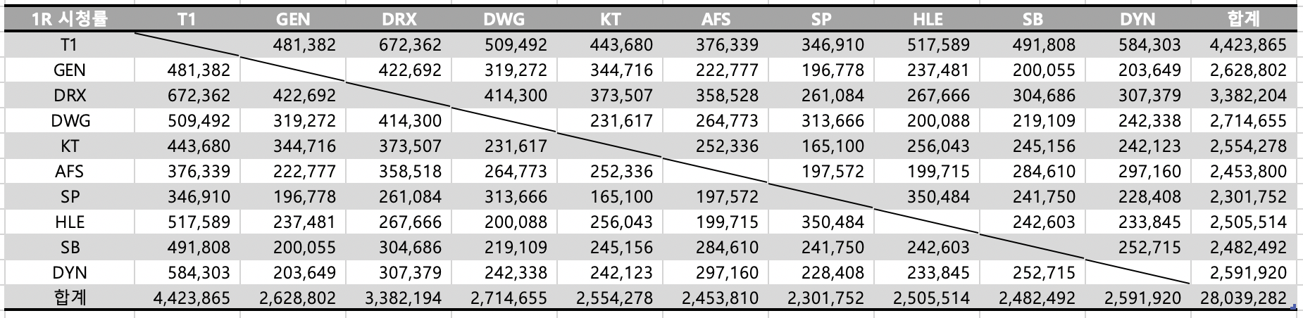 Subject   LCK 서머 1R 시청자 수 총 정리