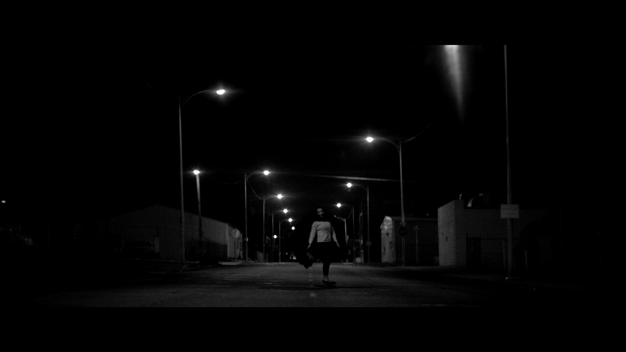영화는 여성에 관한 이야기로도 보입니다. 피를 빨리며 스러진 이들은 모두 남자들이고, 이들이 피를 빨리는 장면은 에티를 괴롭히던 장면과 맞닿아있습니다. 여자 뱀파이어가 여자를 괴롭히는 남자들의 피를 빨며 죽이는 이야기가 되는 거죠. 물론 그 심판은 분노나 원한을 해소하는 감정적인 종류의 것은 아닙니다. 갑자기 들어 닥친 재앙과 더 유사한 형상을 띄고 있습니다. 그리고 소녀는 에티를 쫓아다닙니다. 사이드를 죽이고 뺏은 장신구를 주고 에티와 이야기를 나누며 동경과 연민을 보입니다. 이 부분에서 영화는 에티의 입을 빌어 여자로서의 소망과 해진 꿈을 관객들에게 들려줍니다. 또한, 소녀와 아라쉬와의 관계 역시 일방적인 구원의 공급과 수요로서 남녀를 그리지 않습니다. 뱀파이어로서 훨씬 초월적인 존재가 평범한 인간을 만나며 강한 여성이 무능하고 못난 남자와 함께 합니다. 동시에 지은 죄가 훨씬 큰 악인이 그보다 덜한 악인을 포용하는 뻔뻔함도 가지고 갑니다. 챠도르를 망토처럼 휘날리며 그 안을 거리낌없이 보여주는 여자가 바퀴 달린 보드를 타고 다니는 모습은 그 자체로 아랍 문화권을 향한 반항적인 도발이기도 합니다.