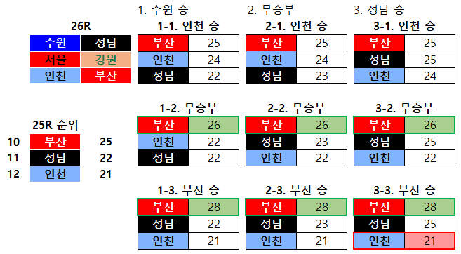 문제는 인천인데요. '부산에게 지고 성남이 이기면' 강등입니다.