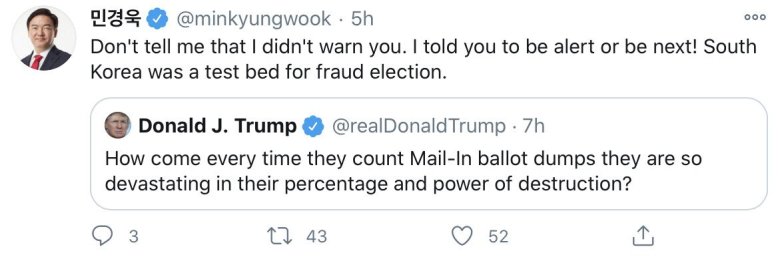 트럼프 발언에는 여러 문제가 있는데 특히 법적분쟁의 여지가 큰건 늦게 도착한 표에요. 우편으로 늦게 도착한 표는 실제로 무시해버릴 근거가 있어요. 오히려 무시할 근거가 더 많을 수도. 물론 그렇다고 투표한 쪽이 잘못했다는 건 아니고요. 오히려 책임은 시스템쪽이 훨씬 커요. 이게 미국 우체국장을 일부러 갈아버려서 미국 우체국 서비스를 망가뜨리고. 공화당측에서 조직적으로 표검증 절차를 무시하면서까지 장난질을 쳐놔서 표 도착과 집계를 늦게 유도했다는 점에서 완전 짜여진 시나리오.