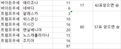 펜실베니아 (20) 조지아 (16) 노캐(15)는 넘어오면 좋고 안넘어와도 대세와 무관.