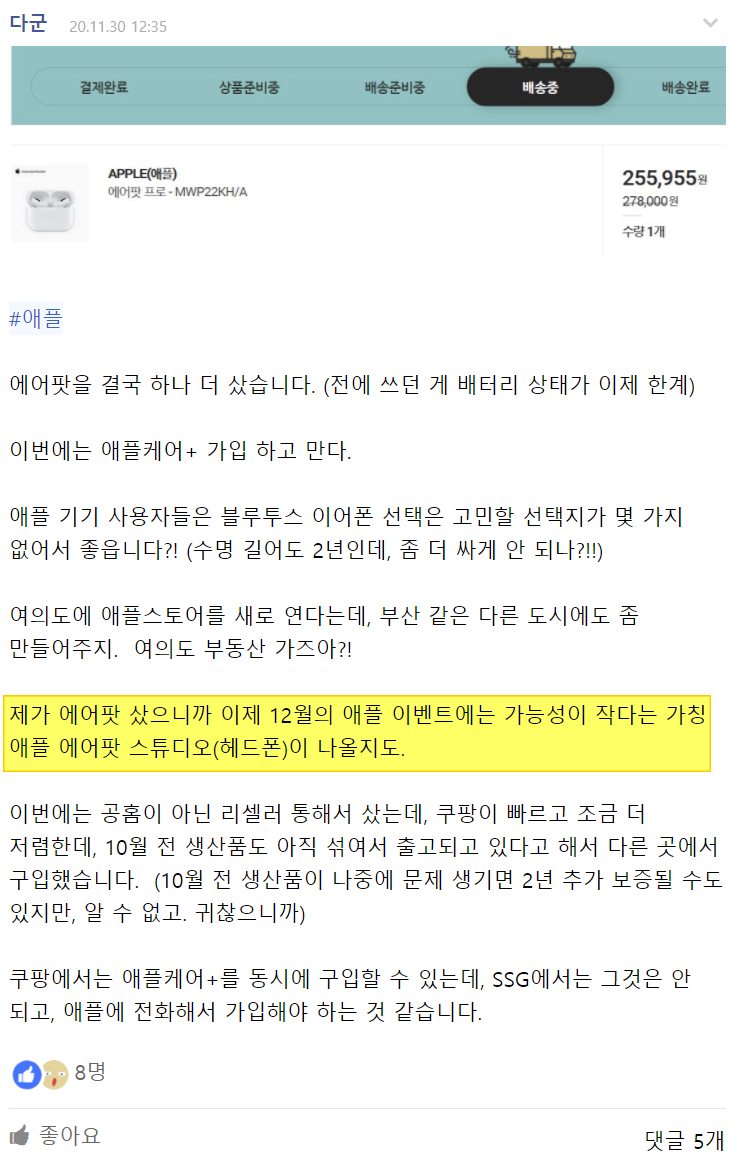 11340 IT/컴퓨터에어팟 맥스 1일차 후기 3 Leeka 21/01/14 3994 2