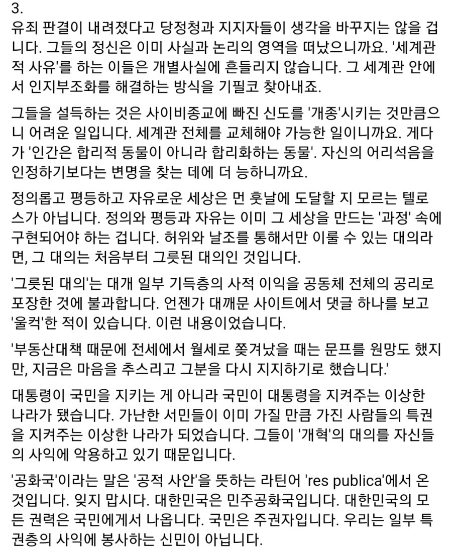 돌이켜보면, 동양대 현장에서 보이는 부조리가 권력으로 덮혀가는 것을 정면으로 직시한 사람이자 조국의 지난 친구로서, 직장과 인간관계를 내던지고 옳다고 믿는 신념에 따라 행동하는건 분명히 쉽지 않은 일이었을겁니다.