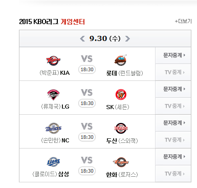 Subject   [야구] 09/30 2015 KBO리그 티타임