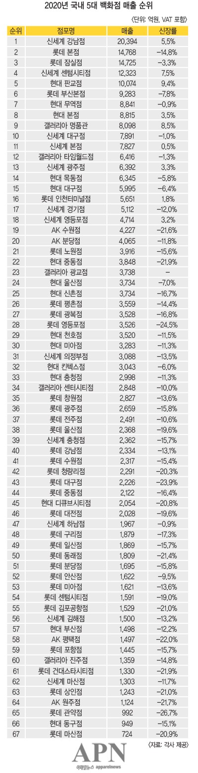 | Subject | 2020년 전국 백화점 매출 순위 |