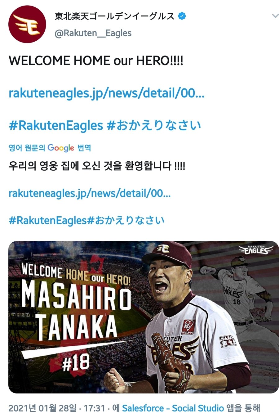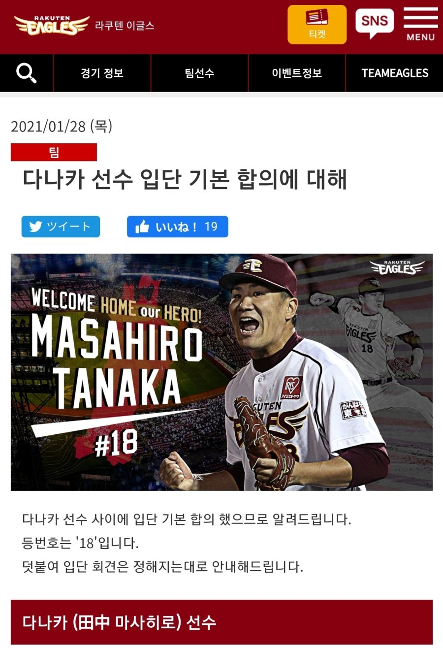 안녕하세요 김치찌개입니다! 다나카 마사히로가 라쿠텐 복귀를 하는군요 저는 당연히 메이저리그에 남을줄 알았는데 말이죠 기자회견에서 큰 오퍼가 왔다고는 하는데 복귀 이유가 도호쿠 대지진 10주년 때문이라는 얘기도 있고요 다나카는 라쿠텐에서 2013년 28경기에서 24승 0패 평균자책점 1.27 이라는 압도적인 기록과 함께 2번째 사와무라상을 받고 포스팅으로 메이저리그에 진출했는데요 뉴욕 양키스와 무려 7년 1억 5,500만달러 계약을 맺었죠 그전에 포스팅은 가장 많은 포스팅 비용을 낸팀이 독점교섭권이 있어서 포스팅+계약금액에서 반정도가져가 선수에게 불리했는데 다나카 포스팅은 2천만달러를 쓴팀은 모두 협상이 가능해서 선수에게 유리하게 되었죠 개인적으로 다나카는 잘했지만 받은 금액으로 보자면 좀 아쉽긴 합니다. 0