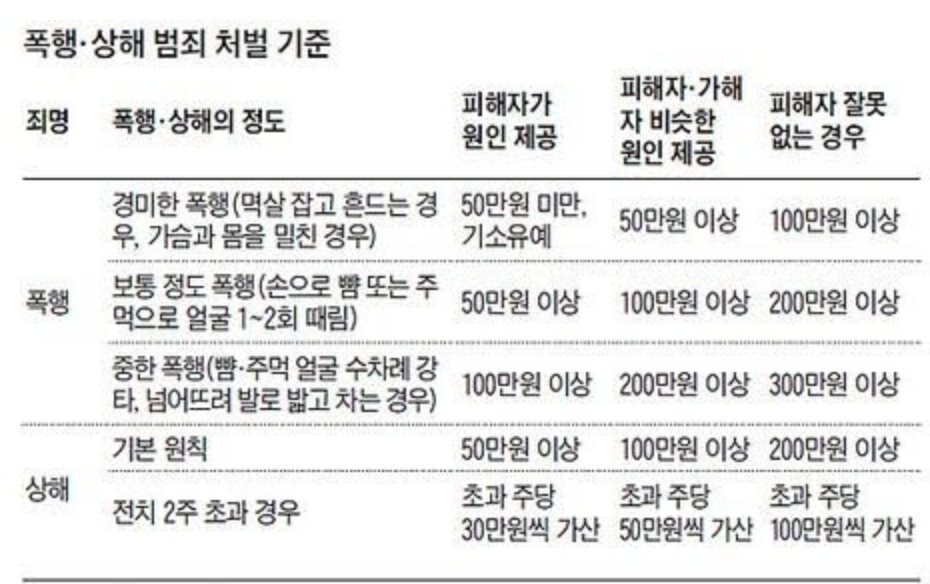 소드가 경미한 폭행을 당해야 할 과실은 없기 때문에.  피해자 잘못 없는 경우. 로 이동하면 딱 100만원이 가이드 라인으로 나오게 됩니다.