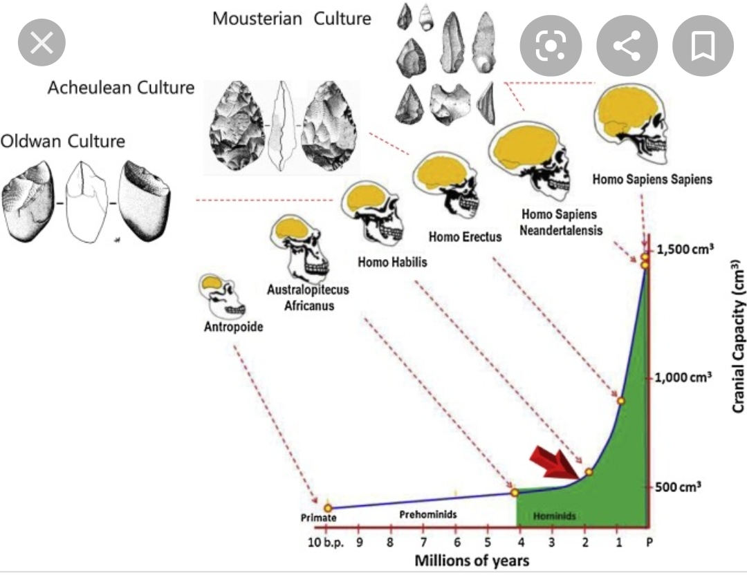 농사를 시작한 후 인간의 두뇌 크기는 (1500cc에서 1350cc로)빠르게 줄어들었다. 이 사실은 잘 연구되어있으며, 인종, 성별, 지역을 불문한 사실이다. 예를들어, Henneberg(1988, p. 395)는 홀로세 동안 유럽과 북아프리카의 두개골 용량이 줄어들었음을 지적했다.