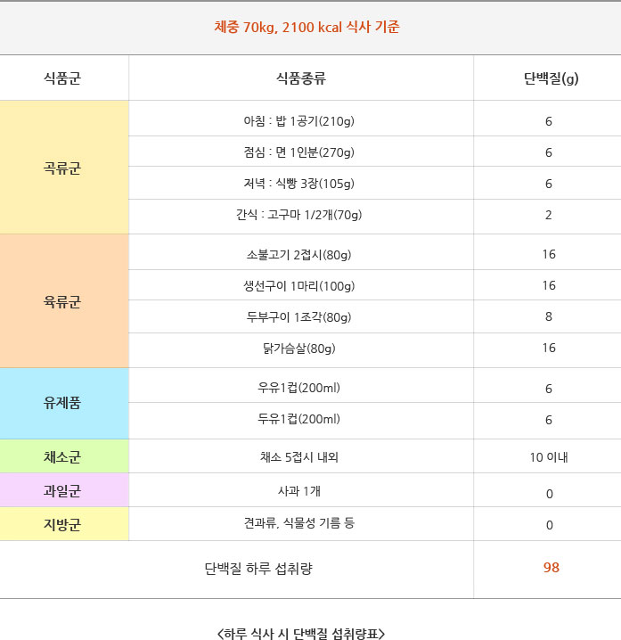 실제로는 다른 부분에서도 단백질을 섭취하니 이것보다는 적게 먹어도 되지만,