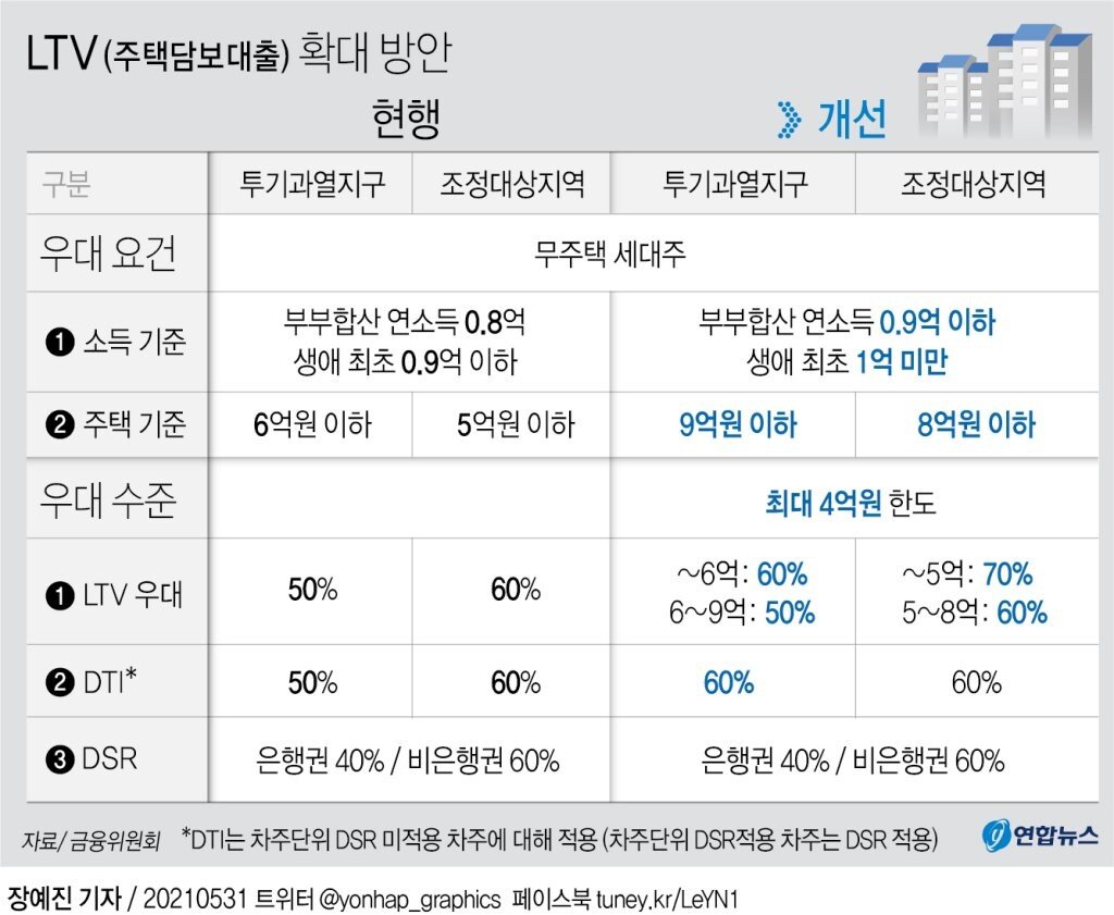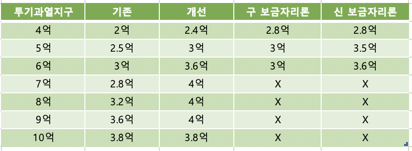 기존에 6억 이하 주택 구입시에는 '보금자리론 사용' 해서 3억을 받는게 최고의 기술이였는데요. 올해 7/1일부터는 위와 같이 개편들이 적용됩니다. 1 - 보금자리론의 한도가 3.6억까지로 올라갑니다. 기존에는 한도를 3억으로 막아놔서.. 실질적으로는 '4.3억~6억' 짜리 집을 살때 3억이 나오는 구조였습니다만 이제 보금자리론의 한도가 3.6억으로 확대됩니다.. 2 - 무주택자의 주택 구입시 LTV 완화 기준이 기존엔 6억/5억이였으나 이제 9억/8억으로 기준 자체가 상향 적용됩니다. (단, 최대 4억까지만 적용됩니다.) 그럼. 기존 대비 어느정도 효율로 좋아진건지. 간략하게 살펴보면 다음과 같습니다. * 무주택자 기준 기존 : 6/30일 전에 대출 실행 시 신규 : 7/1일 이후 대출 실행 시 구 보금자리론 : 6/30일 전에 대출받는 보금자리론 신 보금자리론 : 7/1일 이후 대출받는 보금자리론 5~8억 구간이 크게 좋아지며 특히 6~7억 구간은 엄청난 차이가 발생합니다. 0