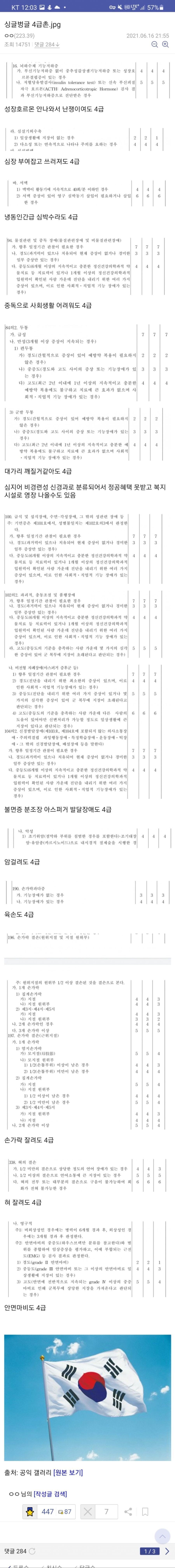다들 아시다시피 병원에서 '진단서'를 끊어가지 않고 몸뚱아리만 이끌고 병무청에가서 징병검사를 받게되면 아무리못해도 '3급'이 뜹니다. 간혹 6~7급이 뜬다?? 이건 재검각이라서 귀찮게시리 또 받으러 와야 함;; 근데 위와 같이 면제를 줘도 쌉인정;; 할만한 것들이 있는데도 불구하고 기어이 구청, 동사무소, 법원, 지하철, 요양원, 보호소, 기타등등 에 보내서 몸아픈 20대 애들을 노예처럼 부려 먹는다고요?? 아파서 온 애들 편하게 있게 해주지 못할망정 '공익 이용권' 같은거 만들어서 부려먹는거 보면 피꺼솟;; 4