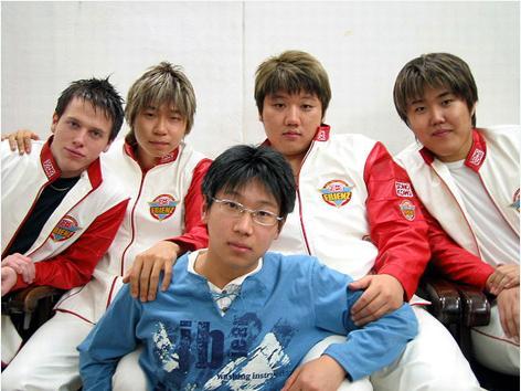 (뒷줄 왼쪽부터 프레드릭 요한슨, 이중헌, 정인호, 이형주. 가운데 사복 입은 선수가 박세룡) 워3 확장팩이 발매를 앞두고 오크 유저들은 상당한 기대를 품고 있었습니다. 확장팩 직전까지 이어진 패치의 흐름이 명확하게 나엘 하향, 오크 상향이었기에 블리자드가 종족별 균형 문제를 명확히 인식하고 있음을 알 수 있었지요. 확장팩에서 추가된 내용들도 오크의 약점을 하나 하나 고쳐주는 것이었습니다. 유닛 하나 하나가 비싸고 체력이 높은데 중반까지 회복 수단이 없었던 오크를 위해 종족 상점에서 회복 아이템 힐링 샐브가 주어졌고 자폭 데미지가 무려 900에 달하는 공중 유닛 뱃라이더가 추가되어 더 이상 키메라를 두려워 하지 않아도 되었습니다. 반면 오크의 주적 나이트엘프와 휴먼은 주요 유닛과 특수 기술에서 명백한 하향을 받았고요. 베타 테스트에서도 오크가 엄청 강해졌다는 결과가 전해졌습니다. 그러나 막상 확장팩이 나오고 보니 이게 웬 걸, 차라리 클래식 말기가 더 낫겠다 싶을 만큼 오크는 최약 종족으로 굴러떨어졌습니다. 워3라는 게임은 마법의 활용과 그 마법 유닛을 잡아먹는 안티 매지컬 유닛, 그리고 마법을 제거하는 디스펠 유닛의 존재가 대단히 중요한 게임인데, 블리자드는 오크에게 이런 저런 상향을 해주면서도 딱 하나, 마법면역을 가진 안티 매지컬 유닛을 오크에게만 주지 않았습니다. 클래식 시절에는 공용 아이템 니게이션 완드로 디스펠이 가능했는데 이조차도 없어지자 오크는 그야말로 상대가 구사하는 마법 지옥에 시달렸죠. 오크에게도 광역 디스펠 유닛으로 스피릿 워커가 새롭게 주어지긴 했는데, 이 놈은 '비싸고 강한' 오크의 컨셉에 충실해서 값이 비싸고 인구수를 3이나 먹는데다 가지고 있는 마법도 영 시원찮아서 좀처럼 쓸 수가 없었습니다. 여기에 더해서 확장팩과 함께 출시된 중립영웅 비스트 마스터의 존재가 사형선고를 내렸습니다. 이 영웅은 워3 역사상 유일무이하게 수차례에 걸친 패치로 모든 스킬과 영웅 스탯에서 모조리 너프를 얻어맞은 영웅이지요. 그러니 처음 나온 순정품 상태일 때는 정말 악소리나게 강한 사기 영웅이었죠. 그런데 환장하게도 이 놈은 오크가 쓰기엔 그리 좋지 않은데 다른 종족, 특히 나엘이 오크에게 쓰면 끝내주게 성능이 좋았습니다. 이 놈의 약점은 작은 마나량과 상대의 디스펠인데 오크는 디스펠이 시원찮은 반면 나엘은 게임 시작하자마자 주어지는 일꾼에게 광역 디스펠+마나감소 기술이 있었거든요. 이런 이유로 확장팩에서는 나이트엘프가 여전히 최강이고, 오크보다 못 한 종족이던 언데드가 화려한 상향을 받아 단숨에 나엘과 어깨를 나란히 하는 강한 종족이 되었으며, 휴먼은 오크와 함께 비주류 종족이 되었죠. 그런데 둘이 붙으면 휴먼이 유리했기에 오크가 밑바닥이었고요. 확장팩 직후에 열린 양대 방송사의 워3리그 예선에서 오크들은 추풍낙엽으로 나가 떨어졌습니다. 두 대회를 통틀어 본선에 진출한 오크는 단 한 명, 프라임리그 2에 진출한 한석희(gamrock) 뿐이었습니다. 이전 글에서 말했듯 이중헌은 PL 1에 집중하면서 확장팩 적응 기간을 이유로 대회에 불참한 상태였죠. 결국 한석희마저 단 1승에 그치며 16강에서 탈락하자 방송대회에서 오크는 사라졌습니다. 배틀넷에서도 모든 종족 가운데 50레벨을 가장 마지막으로 배출한 종족이 오크였죠.(최초 달성자는 박준 lyn.) 다시 찾아온 오크의 암흑기에서 팬들은 이중헌의 복귀를, 그가 오크의 희망을 제시해주기를 기다렸습니다. 그래도 다행이었던 점은 이중헌이 소속된 푸 클랜은 확장팩의 유통사인 손오공으로부터 후원을 받아 '손오공 프렌즈'로 창단되었고 이중헌과 동료들은 더 나은 환경에서 연습을 할 수 있었다는 겁니다. 이렇게 은둔하며 실력을 기른 이중헌은 2차리그와 mbc게임 프라임리그 3에서 마침내 예선을 뚫고 본선에 올라옵니다. 다만 온게임넷에서는 서글픈 해프닝 끝에 본선에 진출했는데, 당시 본선 진출자를 10명만 뽑기로 되어 있던 예선에서 휴먼과 오크가 전멸하는 결과가 나오자 스폰서였던 손오공 측이 강력하게 항의하며 재예선을 요구하는 초유의 사태가 벌어진 거죠. 결국 온게임넷이 추가 예선을 실시하여 6명의 진출자를 추가 선발했고 그 중 한 명이 이중헌이었습니다. 재밌는 건 두 대회 모두 이중헌, 강서우(reign), 김동현(may) 이 3명이 같은 조에 편성되었다는 겁니다. 이중헌이 들고나온 해법은 그런트+디몰리셔였습니다. 그런트는 클래식 시절 쓰레기 유닛에서 벗어나 확장팩에서 강한 유닛으로 거듭났고 디몰리셔는 그런트에게 부족한 화력을 채워줄 수 있는 공성병기였죠. 그러나 이중헌은 mbc게임의 PL 3에서는 김동현을 눌렀으나 강서우, 김태인(rainbow)에게 패하며 1승 2패로 탈락하고 맙니다. 다행히 온게임넷 2차리그에서는 강서우를 이겨내면서 강서우, 김동현과 함께 2승 1패로 3자 재경기를 갖게 되죠. 여기서 이 세 명의 선수는 한국 게임대회 사상 유례 없는 대기록을 세우는데, 재경기 이후 또 재경기를 거듭하며 무려 5차례의 재경기(총 15경기)끝에 강서우와 이중헌이 8강에 진출했습니다. 재경기에서 10경기나 치