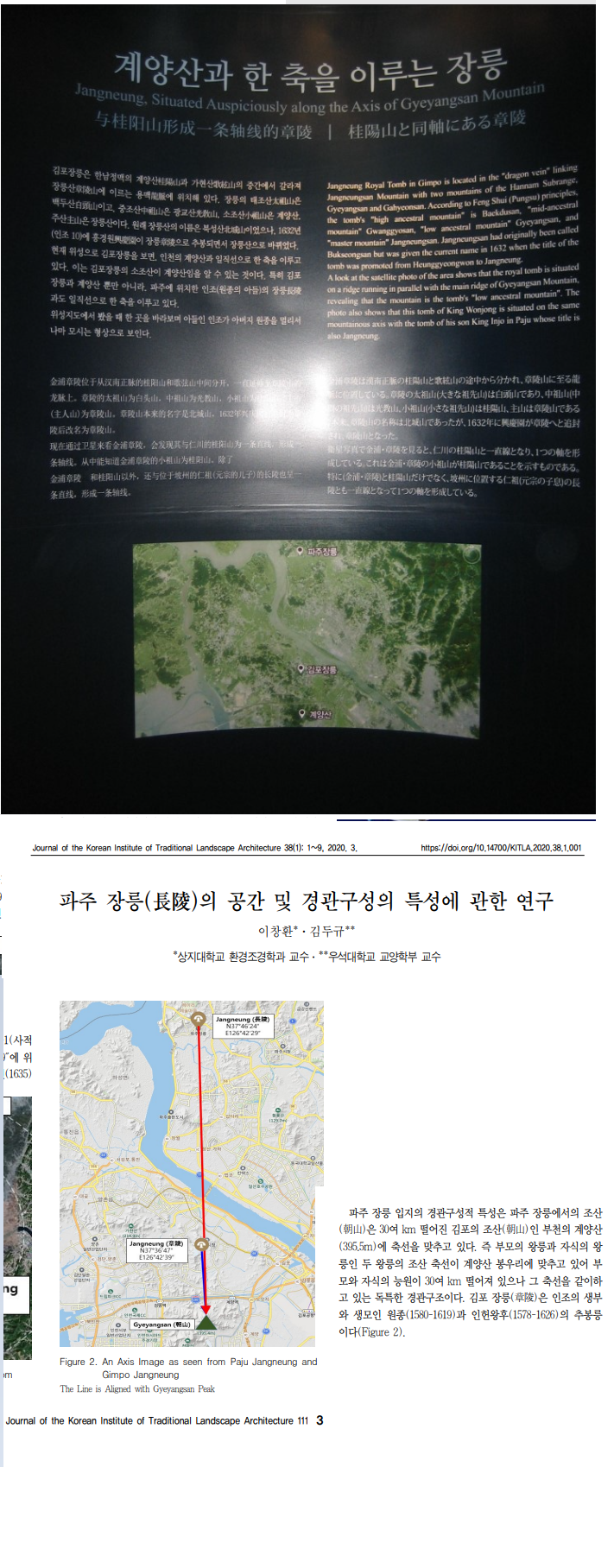 [문화재청 관계자 : 파주 장릉이 인조의 능이잖아요? 봉분에서 정확히 정자로 해서 선을 쭉 긁게 되면 정확히 아버지 산의 아버지 봉분(김포 장릉)을 정확히 바라보고 있어요.]