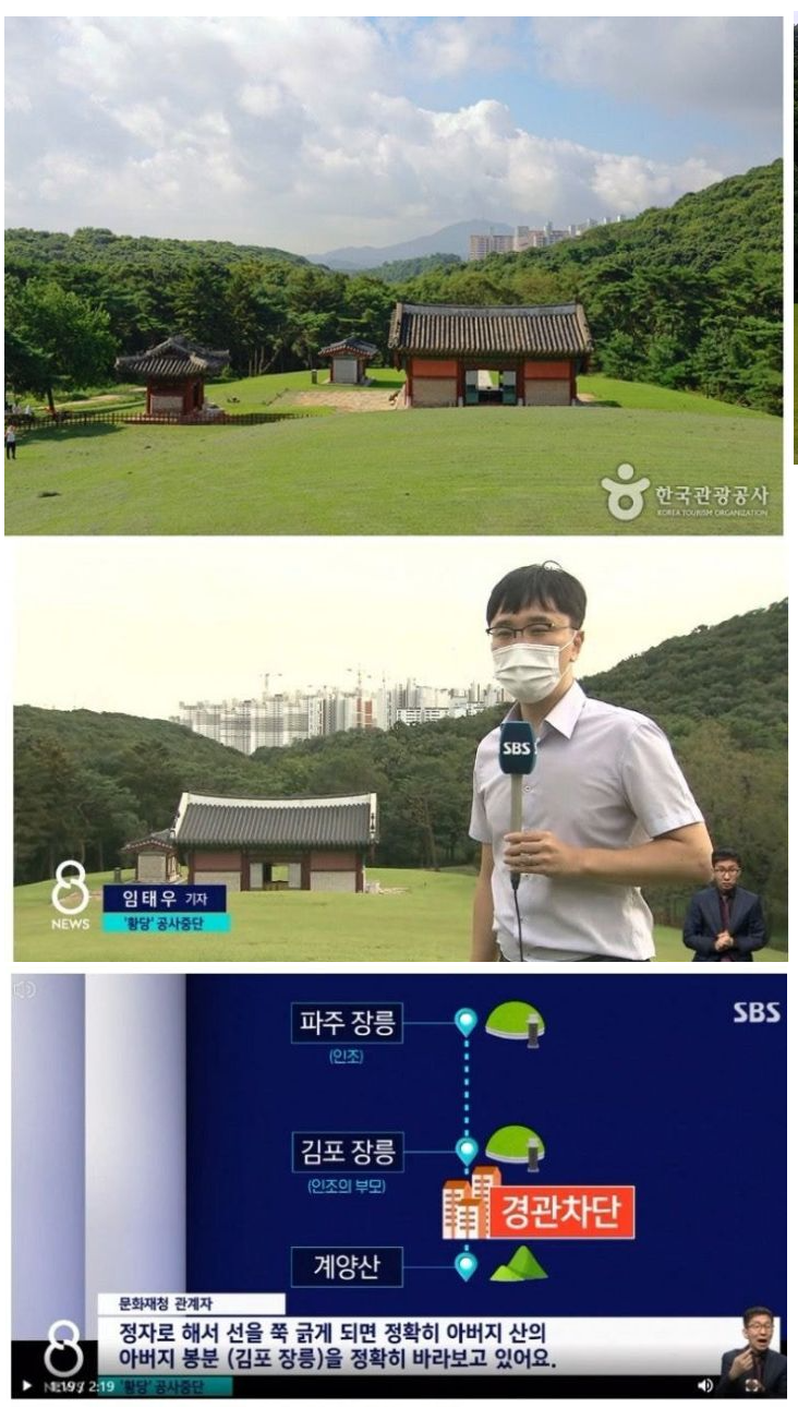 좌우나 다른방향에서 지어진 아파트가 단순히 '왕릉에서 아파트가 보이네?'정도가 아니라