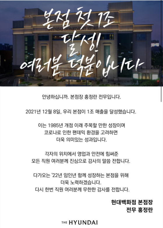 | Subject | 대구신세계에 이어, 현대백화점 본점도 1조 클럽 가입. |