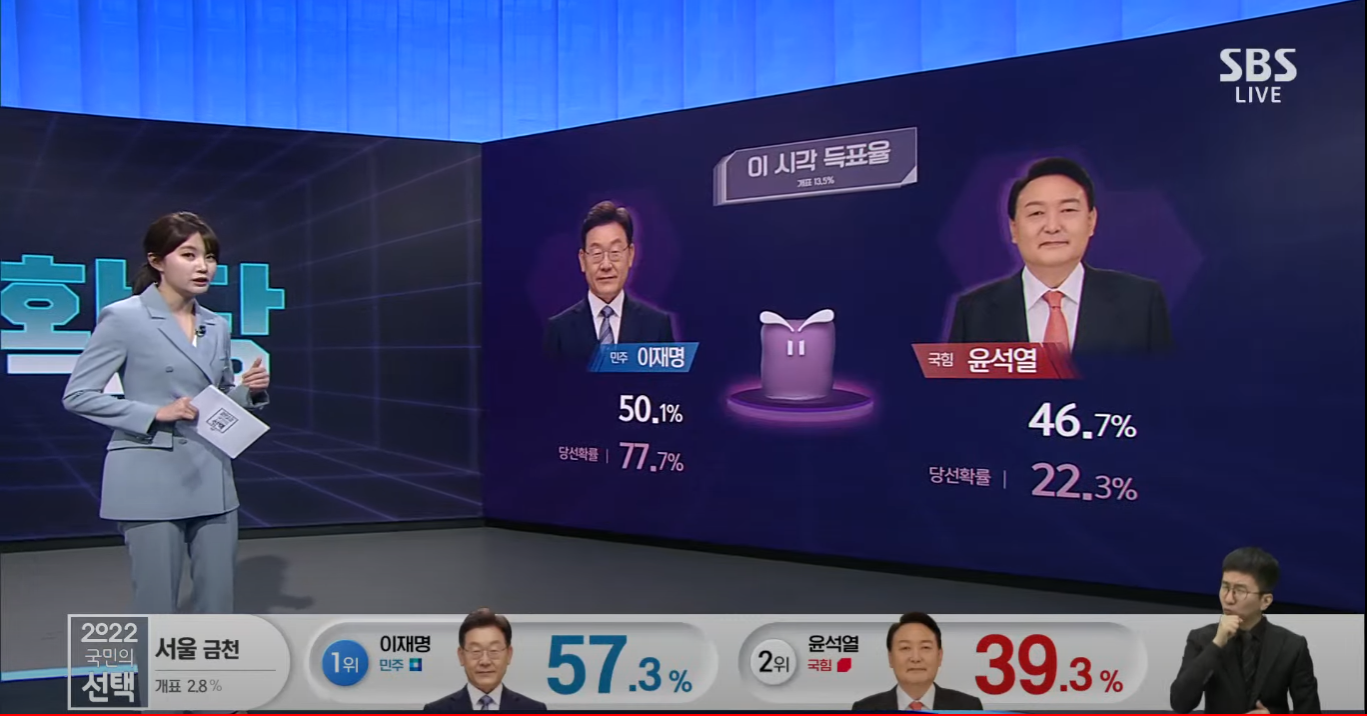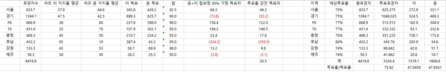 이번 대선에서 며칠전 이준석이 10퍼센트 예상한다 했을때 황당해하는 지인에게 혹시 80퍼 투표율이 넘으면 그렇게 될지도 모른다고 이야기 한적이 있긴 했습니다.. 투표율 75퍼 미만이면 5퍼센터미만 격차일것이고 70퍼 초반이면 박빙승부. 대충 이렇게 이야기 했죠.