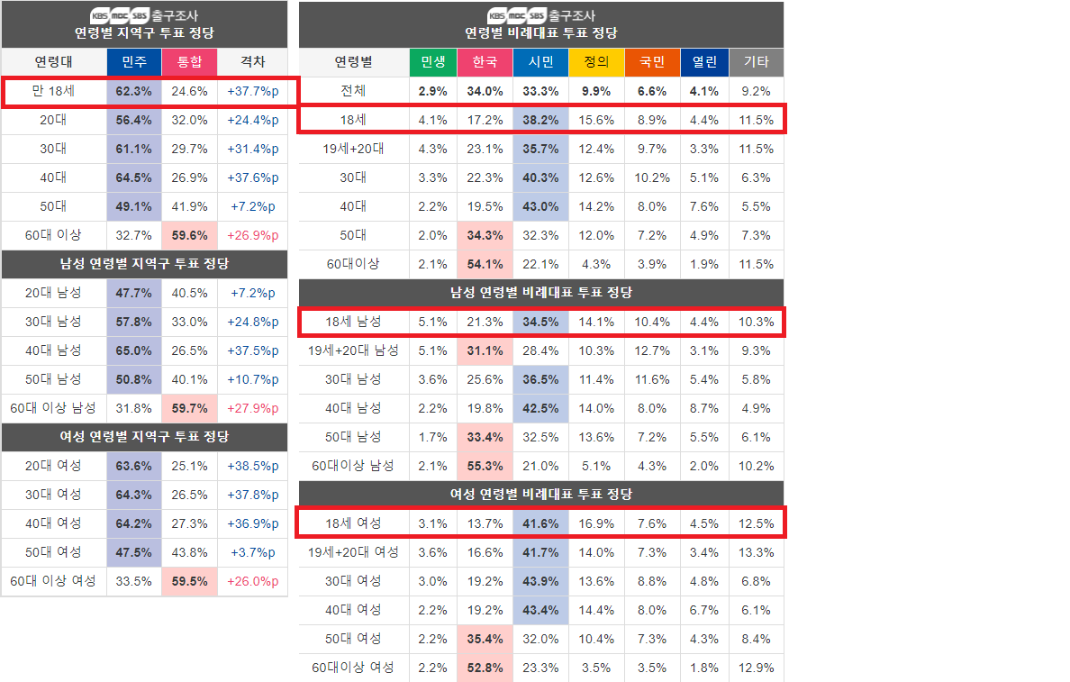 커뮤만 보면 각각 80%씩은 뽑을 것 같은데 그 정도까진 아니지요. 이재명 뽑은 이대남, 윤석열 뽑은 이대녀도 30%대에 이릅니다