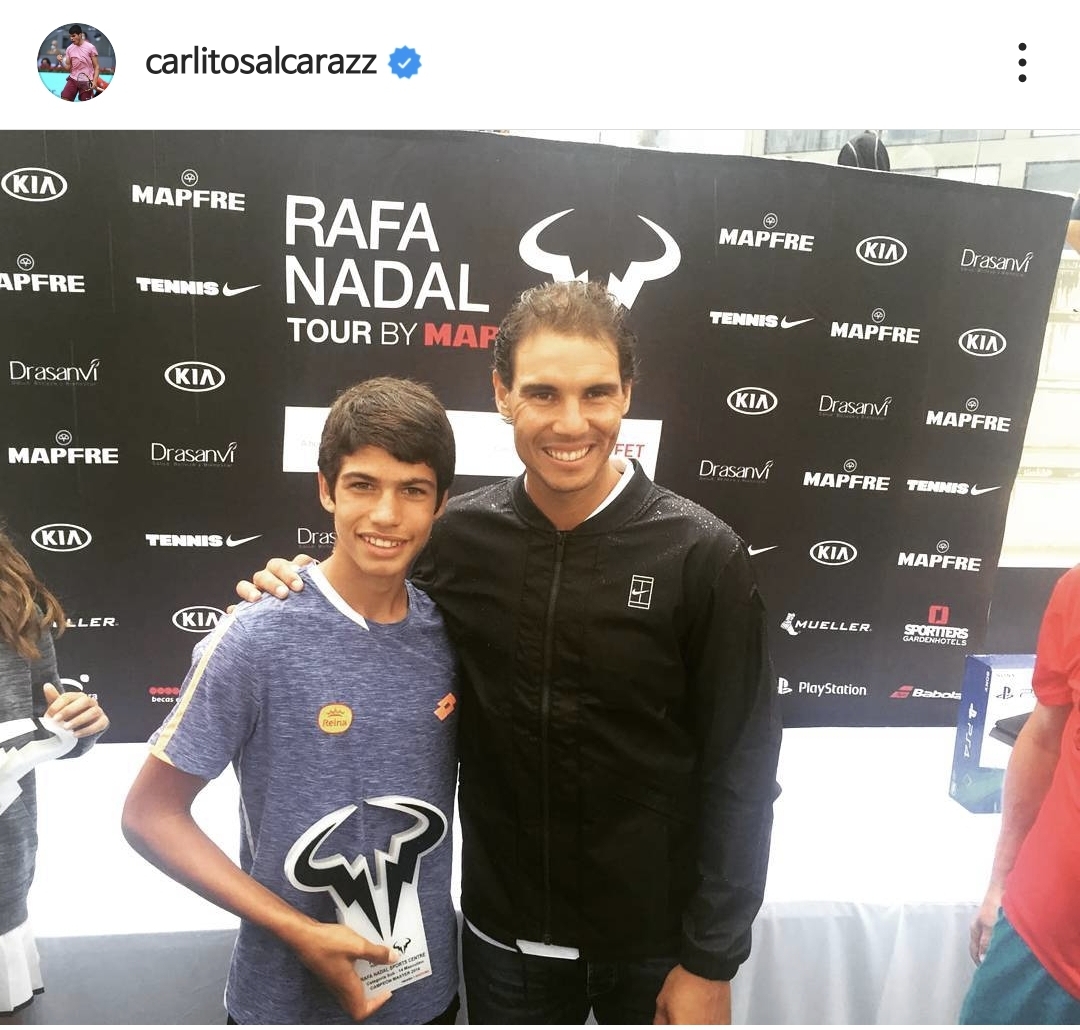 이번 대결이 흥미로운 점은 알카라즈가 나달과 같은 스페인 태생이라는 겁니다. 아직 애기애기한 모습을 보이는 알카라즈는 당연하게도 나달의 광팬이었습니다. 나달과 기념사진을 찍은 것을 자랑스럽게 인스타에 게시하고, 아직도 나달이 인스타를 올리기만 하면 좋아요를 바로바로 누르죠. 성덕이 된 그는 나달과 연습파트너로 몸을 풀고, 이젠 ATP점수 1000점이 걸린 큰 대회의 준결승에서 맞붙을 정도로 성장했습니다.