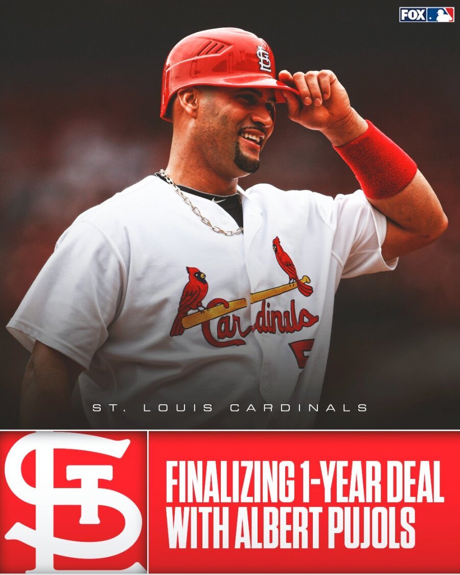 Source confirms: Albert Pujols is signing with the Cardinals. It’s a one-year, major league deal, pending physical, and a really cool potential bookend to his career. @dgoold and @katiejwoo were on it. 안녕하세요 김치찌개입니다! 알버트 푸홀스가 친정팀 세인트루이스와 1년 250만달러에 계약했다는 소식입니다 푸홀스의 세인트루이스 시절 11년 스탯은 정말 아름다웠지요+_+ 11년 평균 타율 .328 출루율 .420 장타율 .617 캬.. 지금 푸홀스는 통산 679홈런인데요 이왕이면 세인트루이스에서 700홈런 봤으면 좋겠습니다 기분 좋은 소식입니다^^ 0