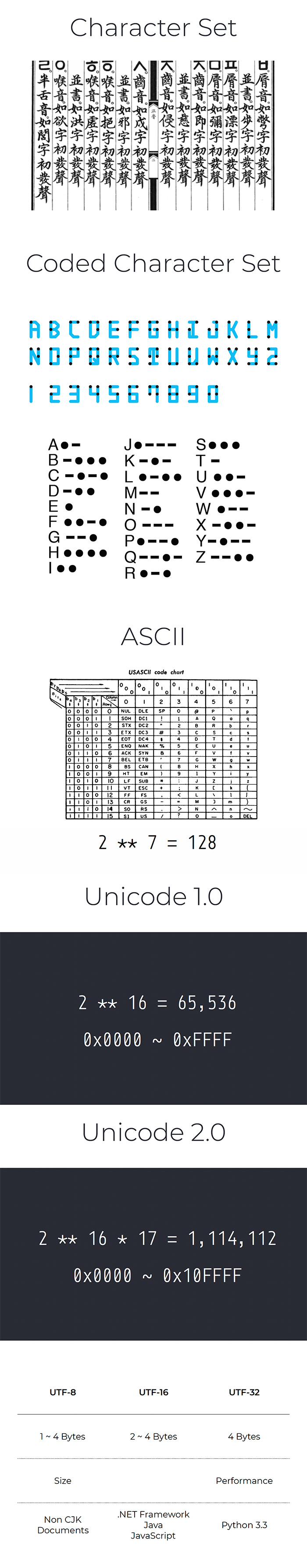 간단하게는 이렇게 시작해서 점점 복잡한 체계의 다양한 표준으로 발전해왔다 정도의 내용에서 중간생략을 많이 하면 대충 이렇다고 합니다.