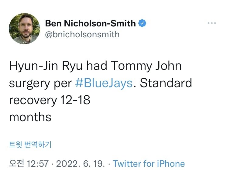 12919 스포츠[MLB] 류현진 팔꿈치 수술로 시즌 아웃 5 김치찌개 22/06/15 3713 0