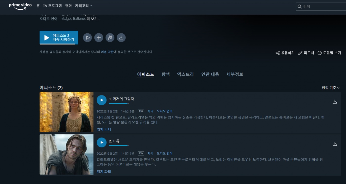 근무 끝나고 각잡고 아마존 프라임 신작 힘의 반지를 봤습니다. 첫날이라 그런지 2화 분량 밖에 없었습니다.