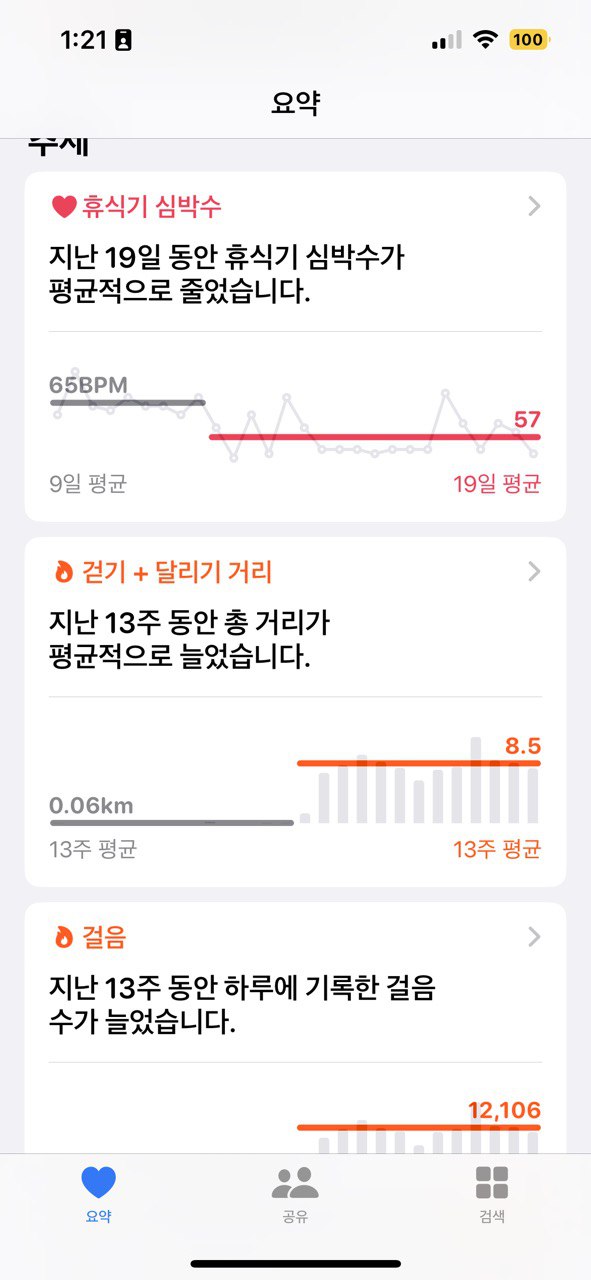 건강 추세를 보여주면서 얼마나 똑바로 걷고 있나도 알려주고, 심박수가 다른때에 비해 낮아졌다,산소 포화도가 다른거 같다.등등등.