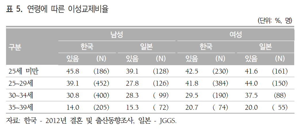 출처는 2012년 자료 - 조성호. (2018). 청년층의 경제적 자립과 이성교제에 관한