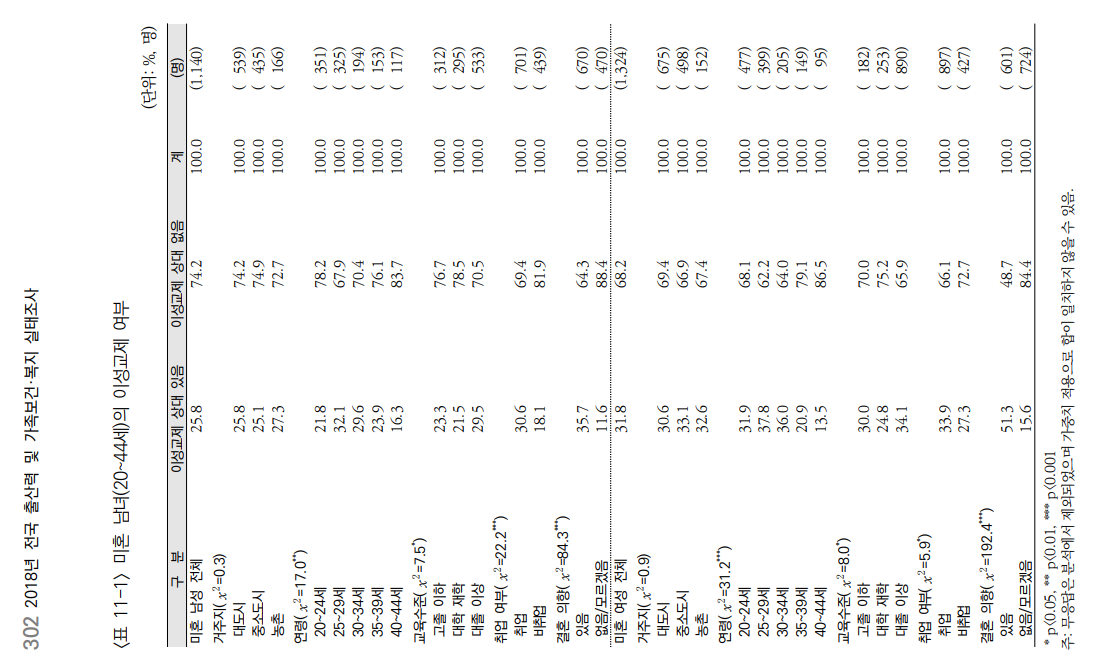 제가 보건사회연구원 조사를 이용해서 계산해본 자료인데, 이성 교제 급감은 25세 미만에서만 벌어졌고 나머지 연령대는 그대로거나 증가세가 감지됩니다.