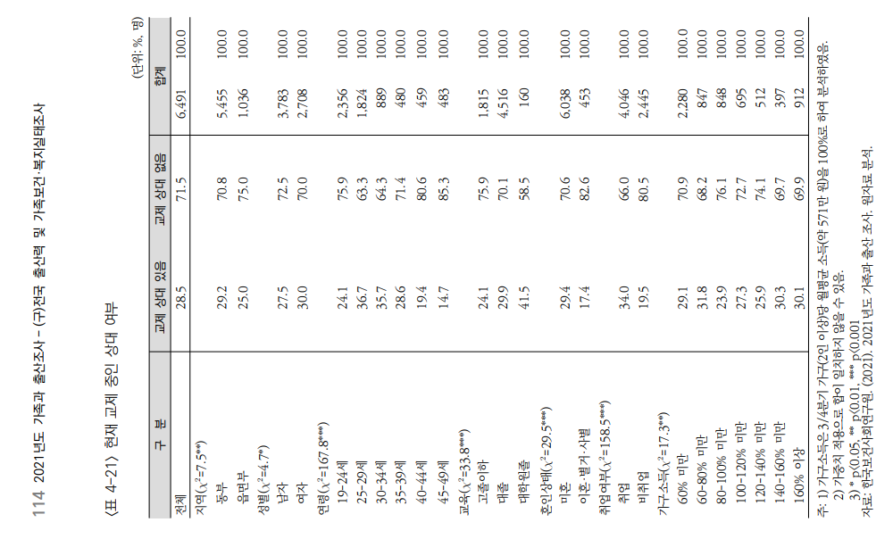 2021년 자료 - 한국보건사회연구원. (2021). 2021년도 한국 가족과 출산 조사 - (구)전국 출산력 및 가족보건·복지 실태조사. 연구보고서 2021-50.