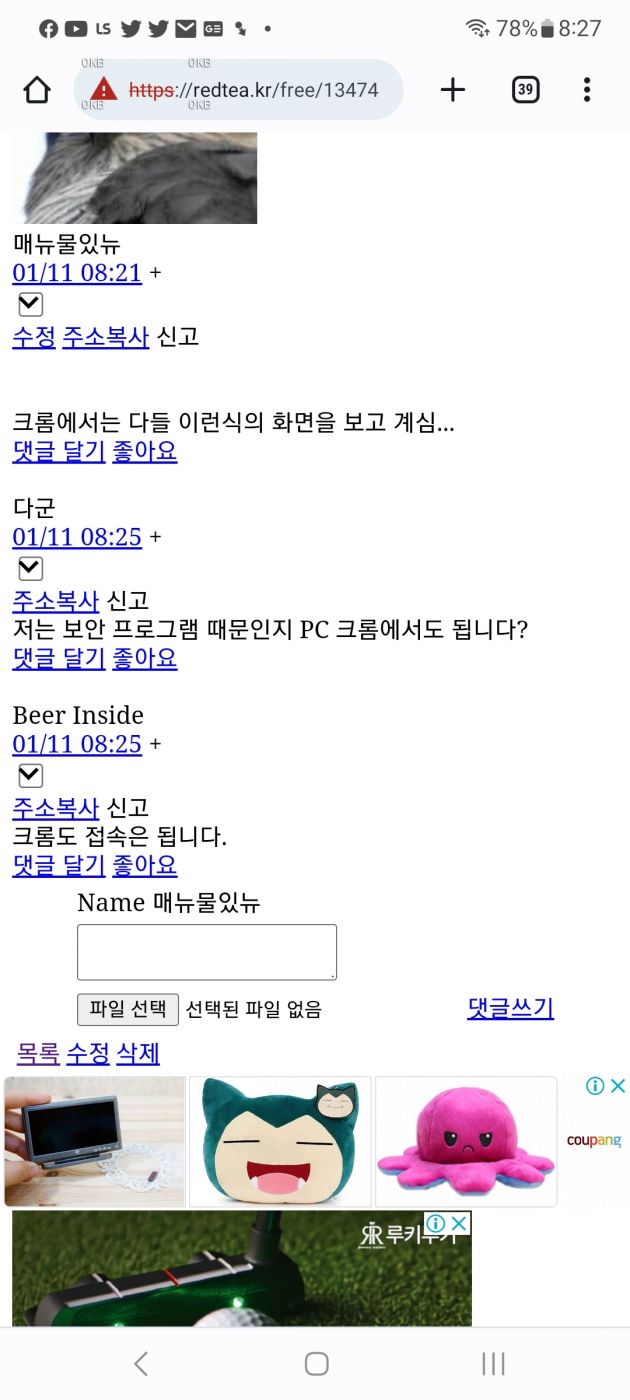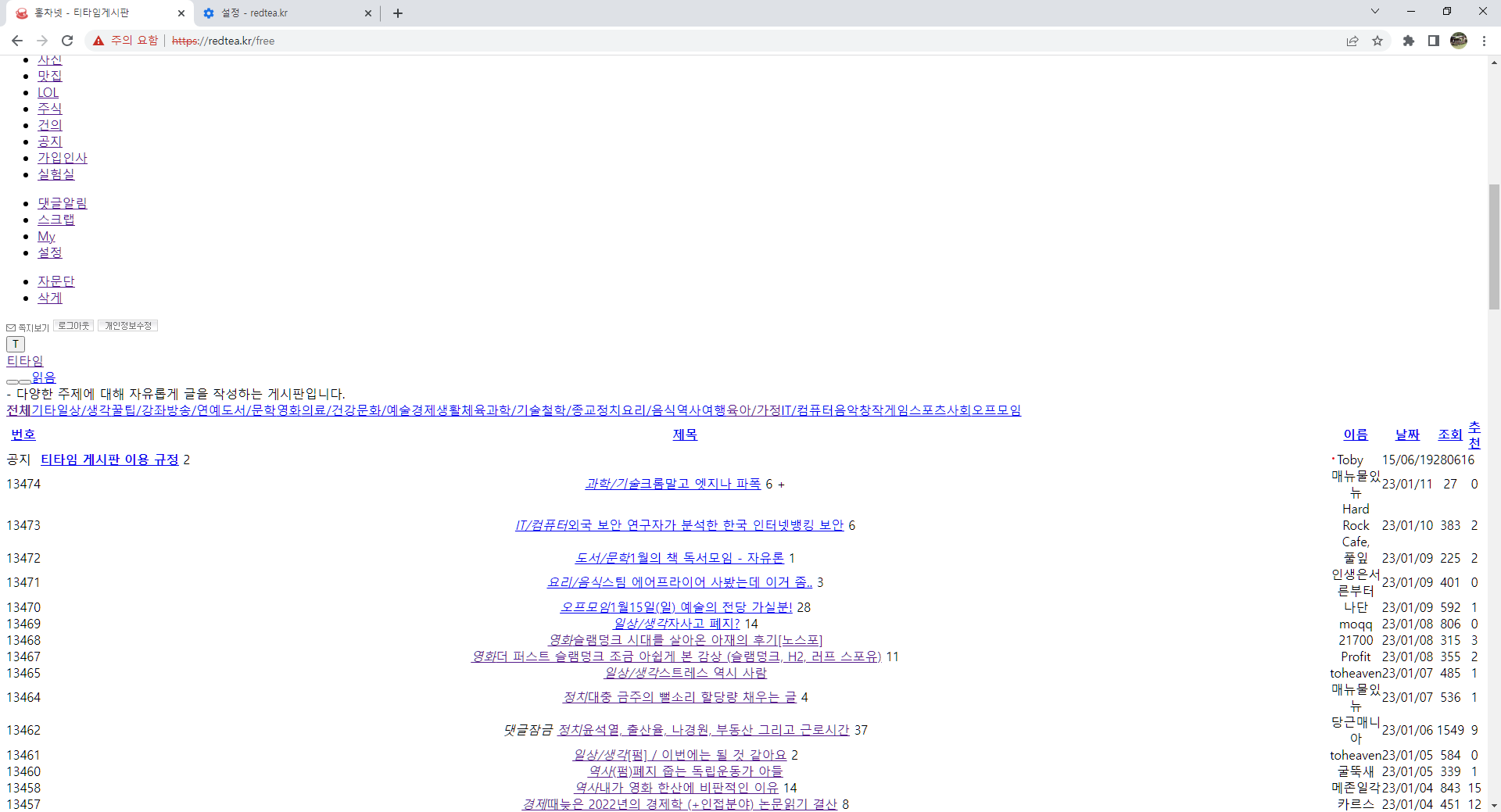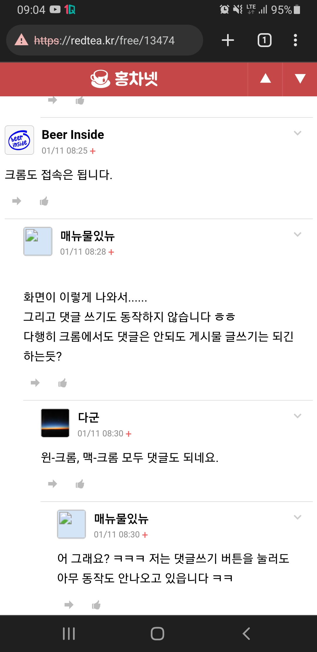 일단 인증서 오류는 뜹니다만 홍차넷은 정상적으로 사용할수 있는것 같습니다.