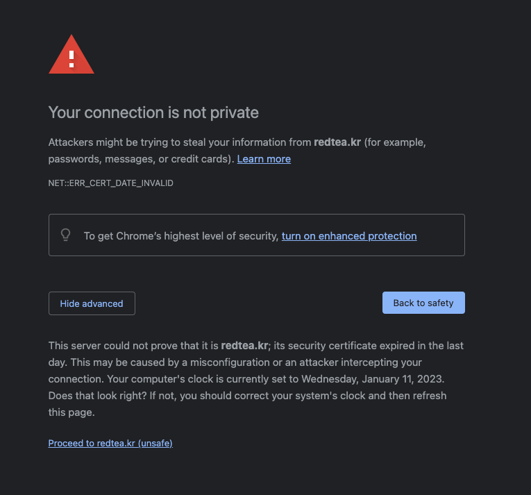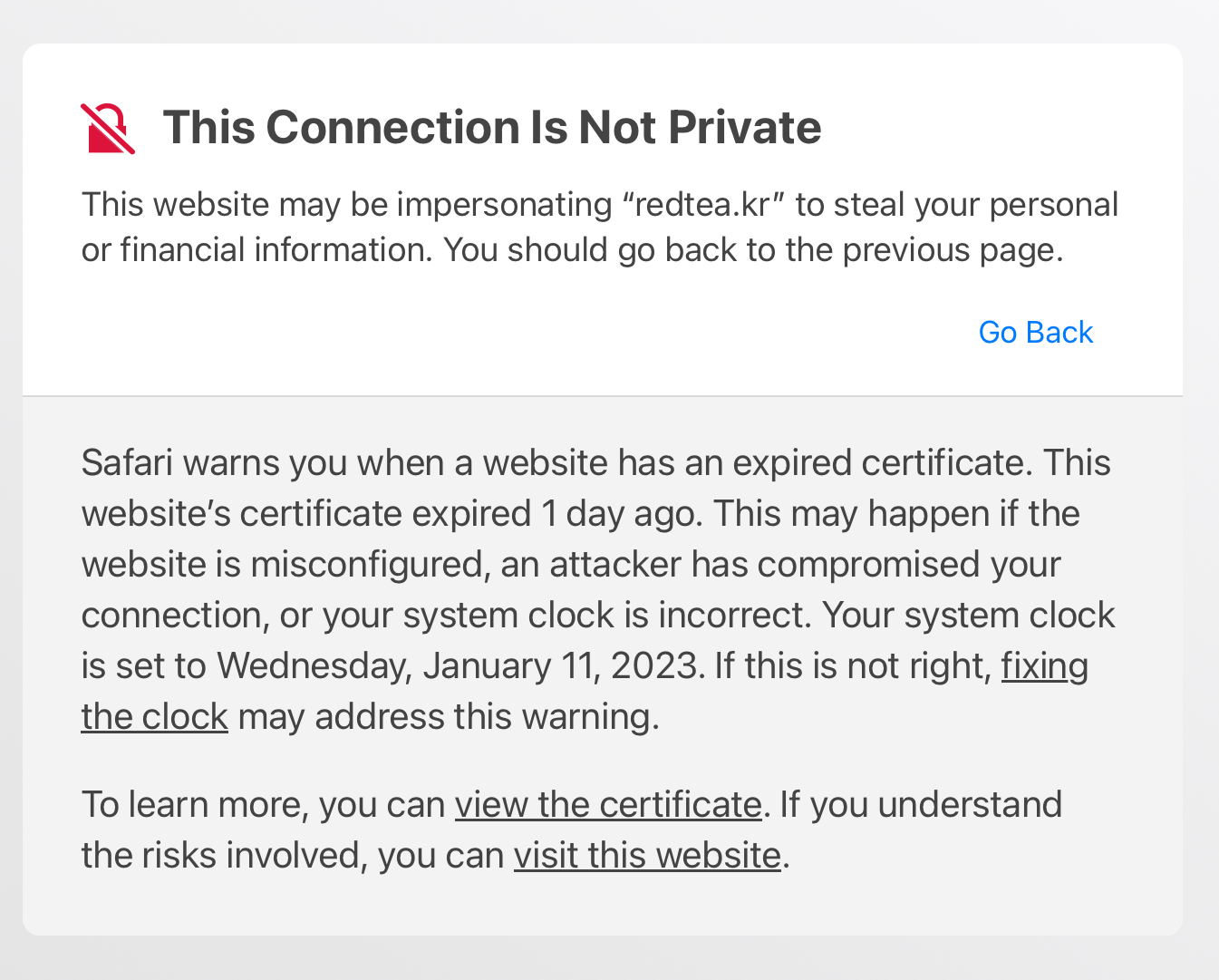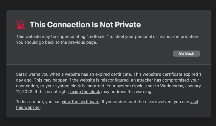 인증서가 오늘 아침 (23년 1월 11일 7시 52분)을 기점으로 만료되었습니다. ㅋㅋ