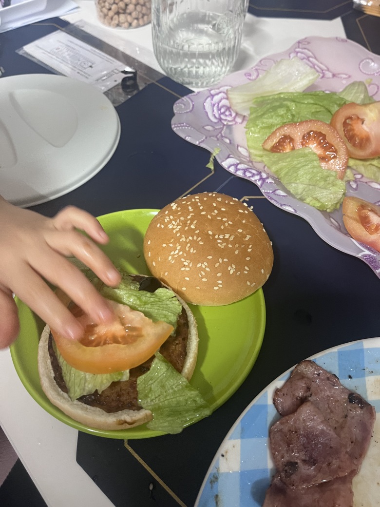 오늘은 아침부터 햄버거를 만들어 먹었습니다.