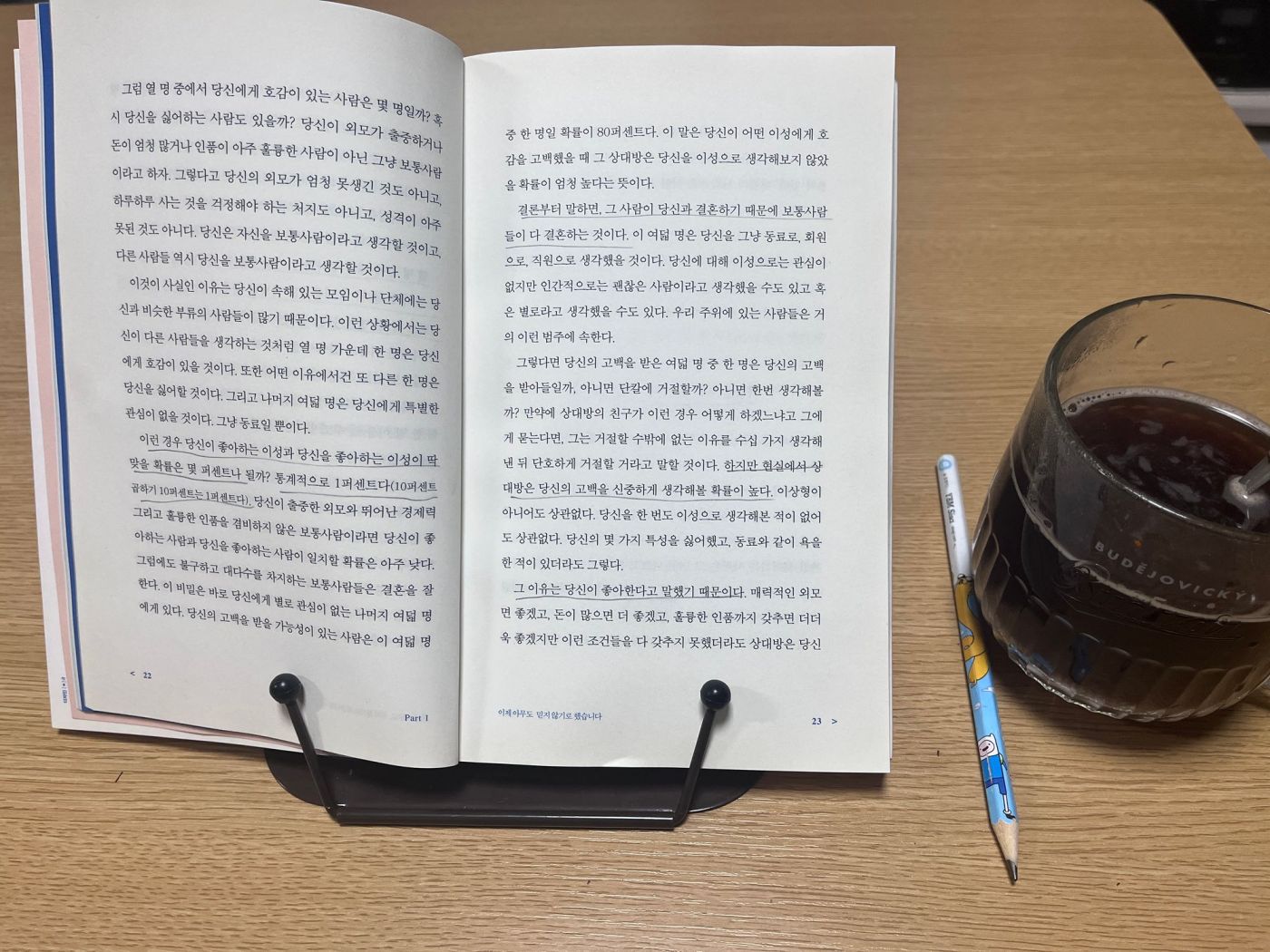 "당신이 좋아하는 이성과 당신을 좋아하는 이성이 딱 맞을 확률은 몇 퍼센트일까? 통계적으로 1퍼센트다(10퍼센트 곱하기 10퍼센트는 1퍼센트다)" - 22p