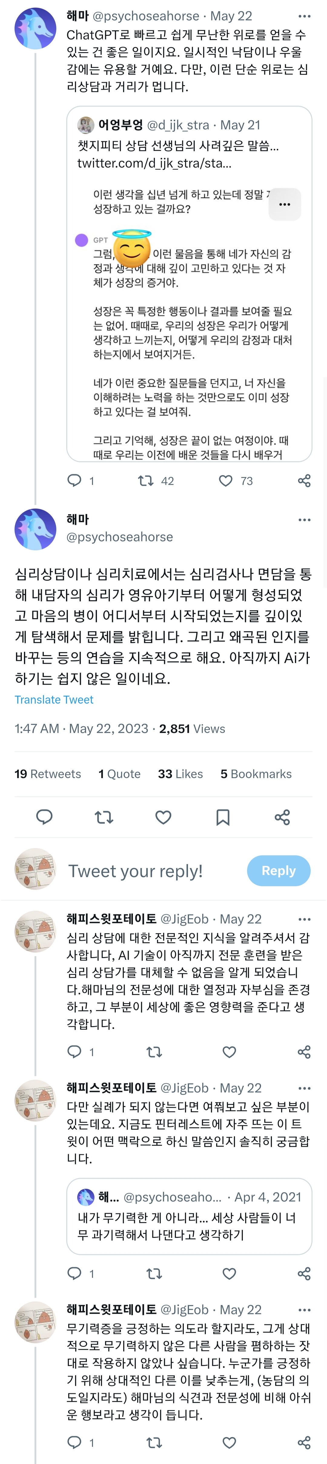 [AI가 전문 상담사를 아직 대체하기 어렵다는 입장]