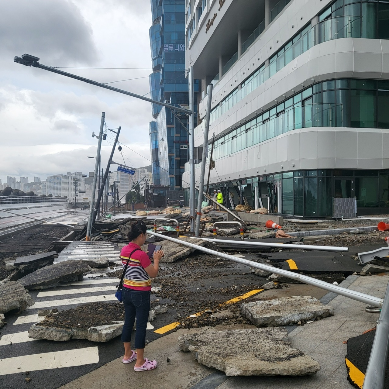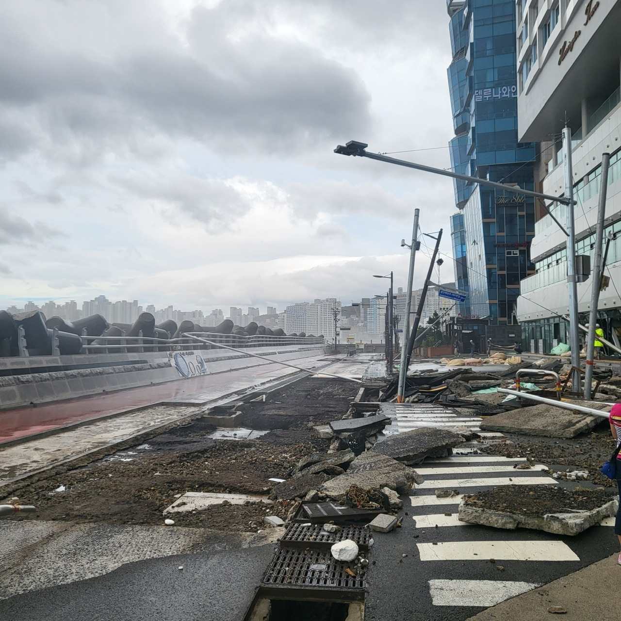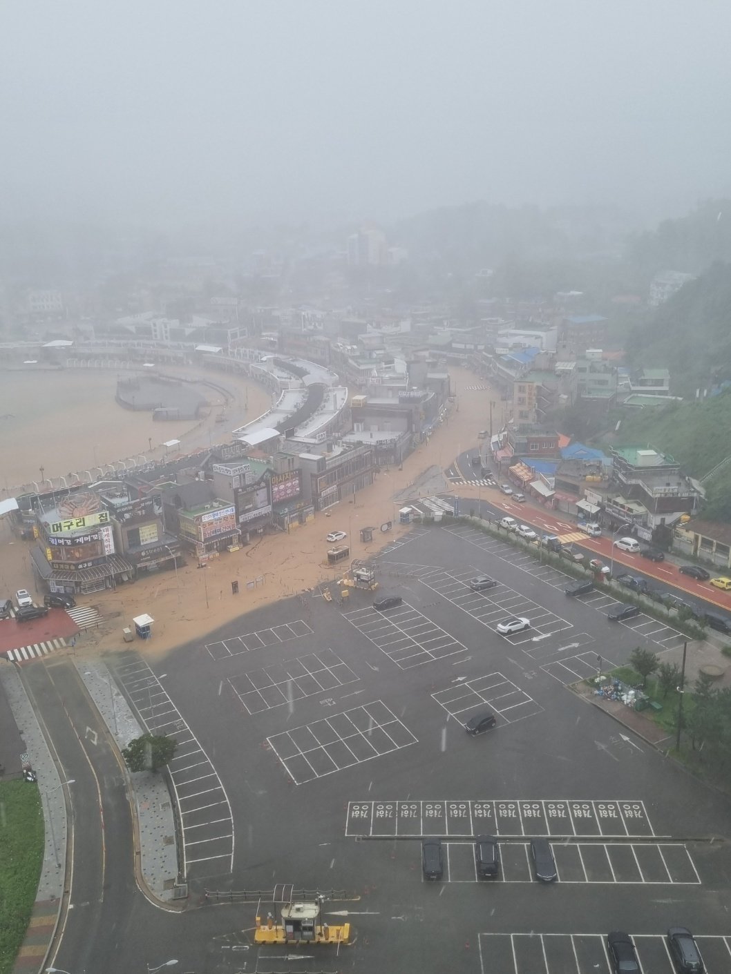 "서 있기 힘들 정도" 부산 세찬 비바람…오전 '최대 고비'