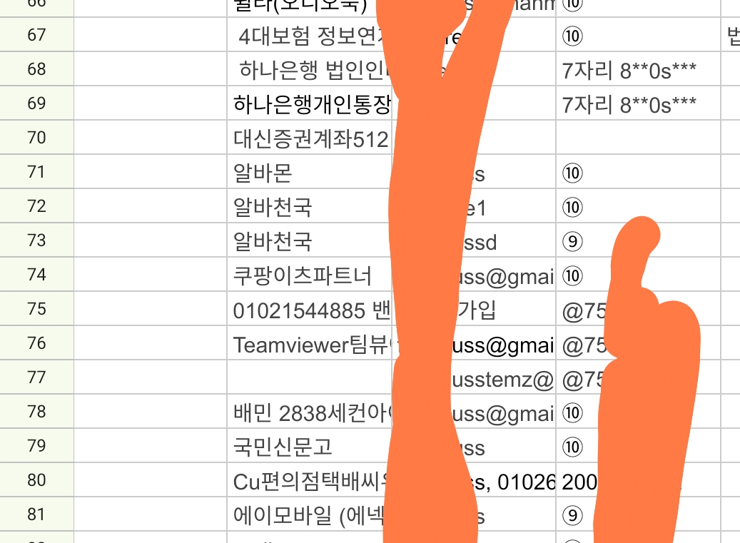 암호 관리용 지메일 계정은 bjse****@gmail.com이읍니다.