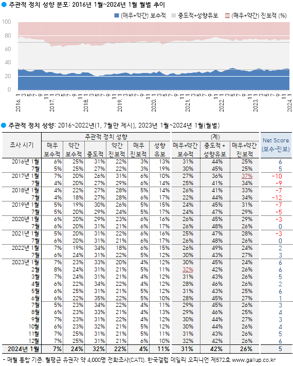 패널조사인 만큼, 보수/중도/진보 비율이 일정하게 유지될것이라는 것을 담보해줍니다만