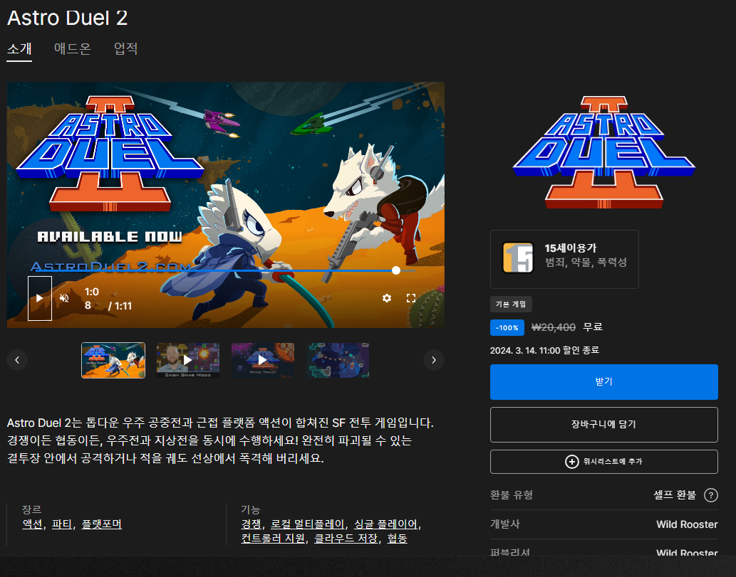 Subject   에픽게임즈 무료 배포 - Astro Duel 2