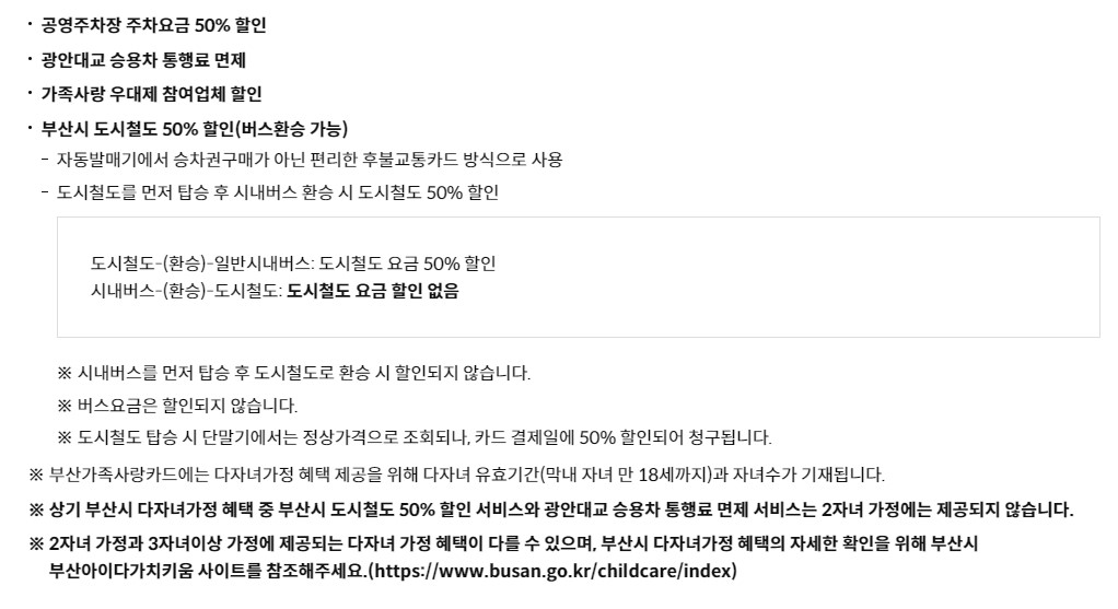 작년부터 부산시도 다자녀혜택을 2자녀 이상으로 바꾸었습니다. 물론 여전히 3자녀 이상에만 주는 혜택이 훨씬 많지만