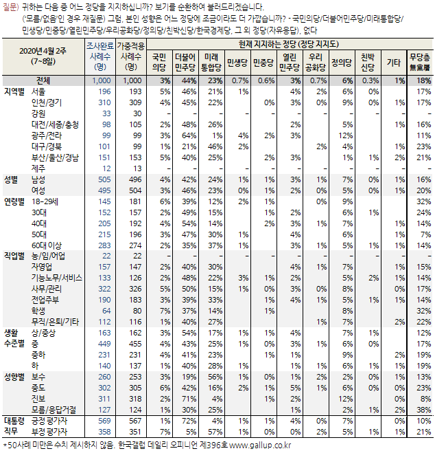 위에 있는 표는 둘다 한국 갤럽 기준입니다.