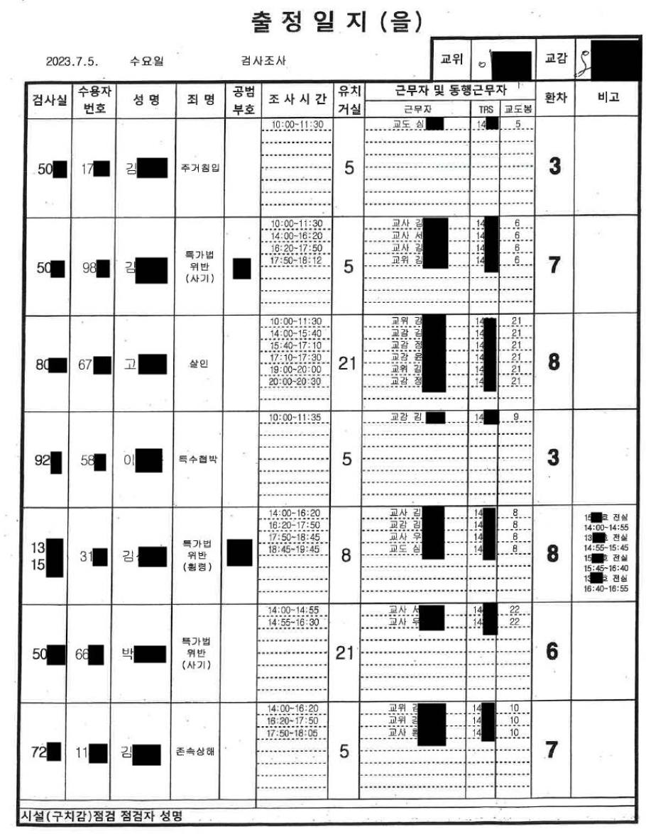 6월 28일과 7월 5일의 출정일지도 유사하게 겹치는 시간대가 있는데, 언론들은 정말 이게 궁금하지 않은 걸까요? 검찰이 공개한 3일간의 출정일지에 모두 세 사람의 동선이 겹치는 것으로 보이는데 그날마다 검찰은 대질신문이라도 벌였던 걸까요? 그랬다면 그 기록이 존재해야 할 겁니다.