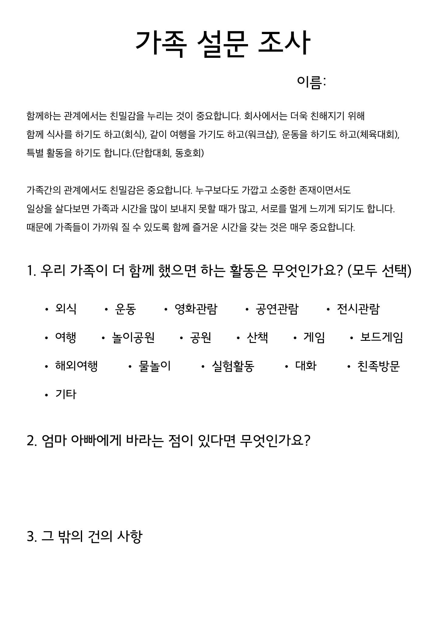 Subject   가족 설문조사 (친목활동)