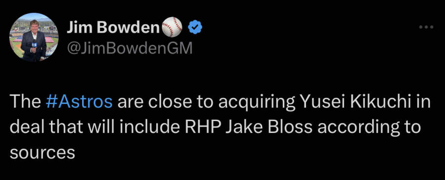 ‌the Houston Astros have acquired left-handed pitcher Yusei Kikuchi from the Toronto Blue Jays, according to ESPN’s Jeff Passan. The Astros have sent three promising prospects to Toronto in exchange for Kikuchi: rookie right-handed pitcher Jake Bloss, rookie outfielder Joey Loperfido, and infield prospect Will Wagner.