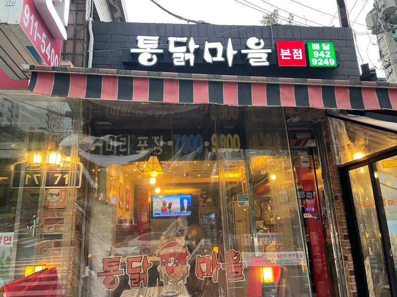 훨씬 나아졌지만 여전히 마음건강이 아슬아슬한 나와 함께 남자친구는 아파트 근처의 ‘통닭마을’이라는 가게를 찾아간다. 촌스럽지만 이상한 맵시가 있는 곳에서, 반반 닭만 놓고 있는데 온갖 서비스가 온다. 우리는 금세 즐거워져 이야기꽃을 피운다.