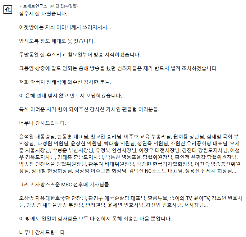Subject   가세연 김세의 부친상에 조화를 보낸 사람