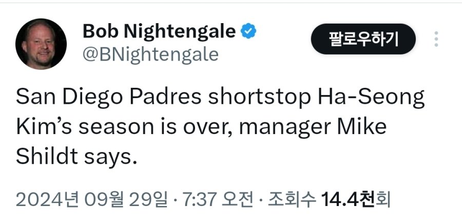 | Subject | [MLB] 김하성 시즌아웃 |
