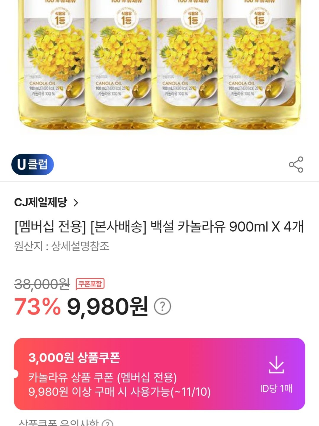 - $60이상 구매 시, $9 자동할인: 카카오뱅크 마스터카드